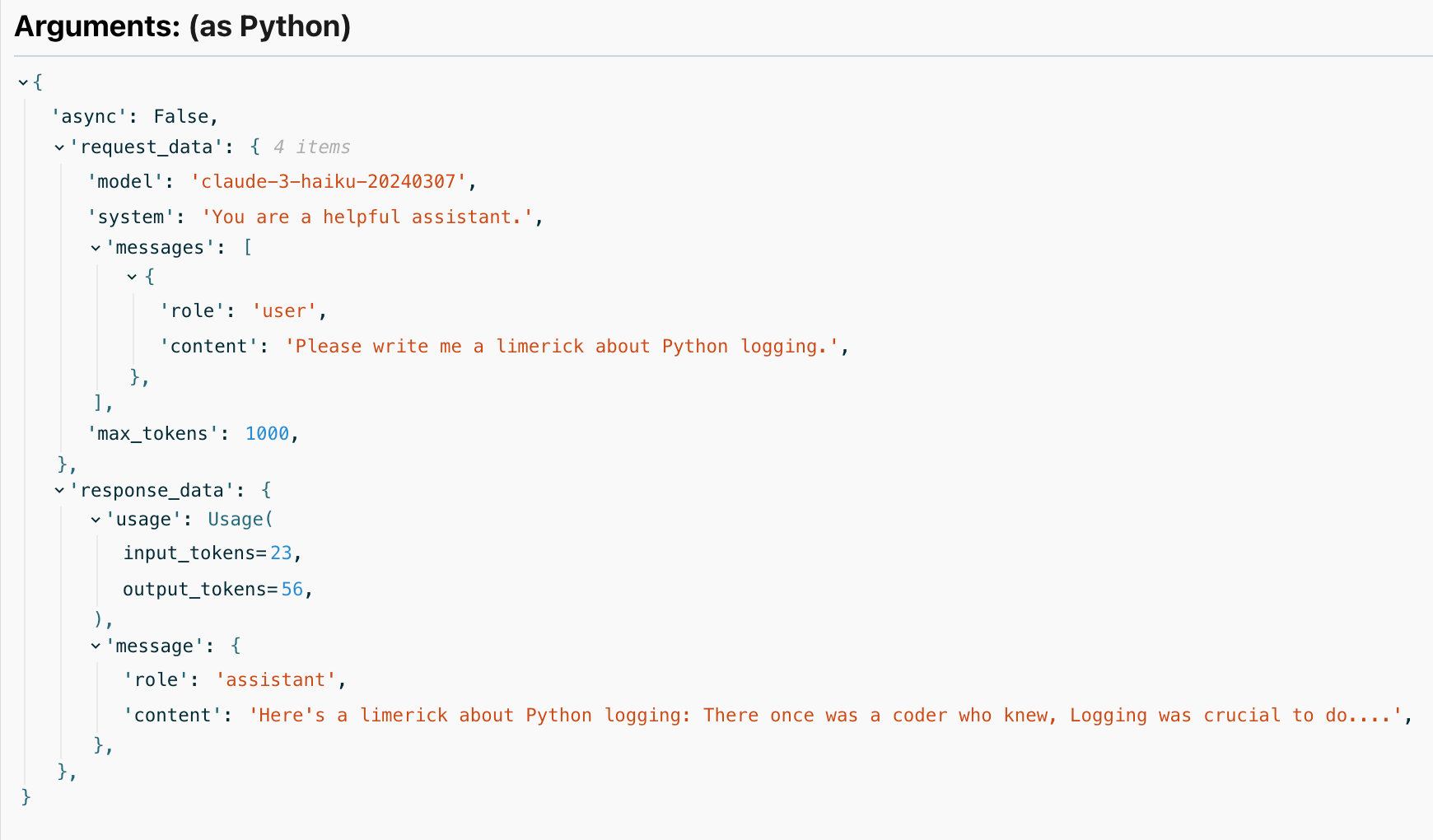 messages=[{'role': 'user', 'content': 'Please write me a limerick about Python logging.'}],